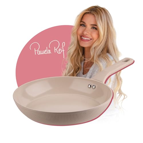 Fackelmann x Pamela mogen stekpanna – Ø 28 cm, tillverkad av smidd, återvunnen aluminium i pastellbeige, keramik, PFAS-fri beläggning, värmebeständig upp till 150 grader C – rengöring för hand