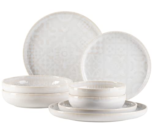 MÄSER 935079 serie Tiles modern vintage porslinsset för 2 personer i morisk design, 8-delad middagsservis med tallrikar och skålar av högkvalitativ keramik, stengods, vit