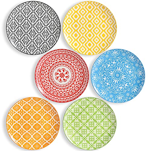 AHX Middagstallrikar uppsättning av keramik - 25 cm stora runda tallrikar i porslin set med 6 - platta färgglada mönster matplattor för kök | familj - diskmaskin | mikrovågsugn | ugnssäker