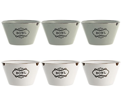 H & H Vintage Set skålar, keramik/tallrikar, vit/daupe, 6 enheter