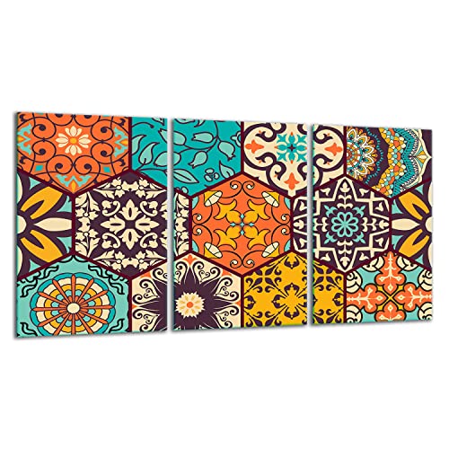 TMK | Spisskyddsplattor, keramikhäll, 3 delar, 30 x 52 cm, keramikhällskydd, kök, elektrisk spis, induktion | spisskydd stänkskydd | glasplatta skärbräda | färgglad mosaik