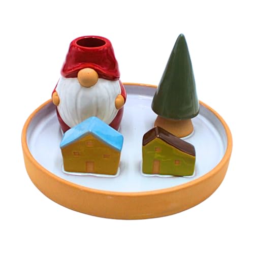 Ljushållare, ljustallrik, ljusstativ, dekorativ tallrik, stavljushållare, julljus, keramiktallrik med tomte, gran och hus av stengods, färgglad, L/B/H: 17 x 17 x 9 cm.