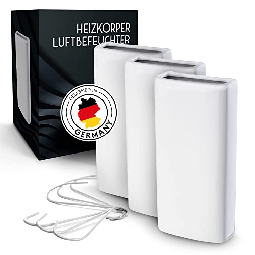 Falkenwerk Keramisk radiator luftfuktare [3 stycken] – universell luftfuktare radiator med flexibla upphängningskrokar – hållbar luftfuktaruppvärmning [lämplig för alla element] vit