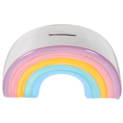 SAFIGLE Kreativ keramisk regnbågsbänk: 18 cm färgglad sparbössa med räknare för barn och vuxna – dekorativt element och pengagåva födsel spargris pengagåva för pojkar och flickor