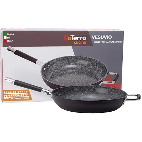 Vesuvio 32 cm stekpanna | keramisk belagd nonstick | värmebeständigt silikonhandtag | hållbar, hög värme aluminiumbas utan PTFE, PFOA, bly eller kadmium | ugns- och diskmaskinssäker | Tillverkad i