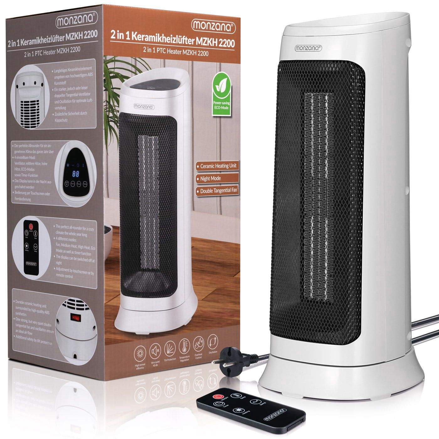 Brandson - Fläktkamin energisparande tyst - oscillation - med fjärrkontroll - vinnare - ECO-läge - 2 lägen - timer - uppvärmning keramisk värmare - badrum vardagsrum kontor