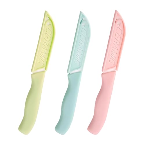 MAEXUS Skalknivar med skyddande fodral, uppsättning av 3 keramiska knivar, fruktknivar, keramikknivar, skalknivar, liten vass kökskniv, ergonomisk keramikkniv för grönsaker och frukt, matlagning