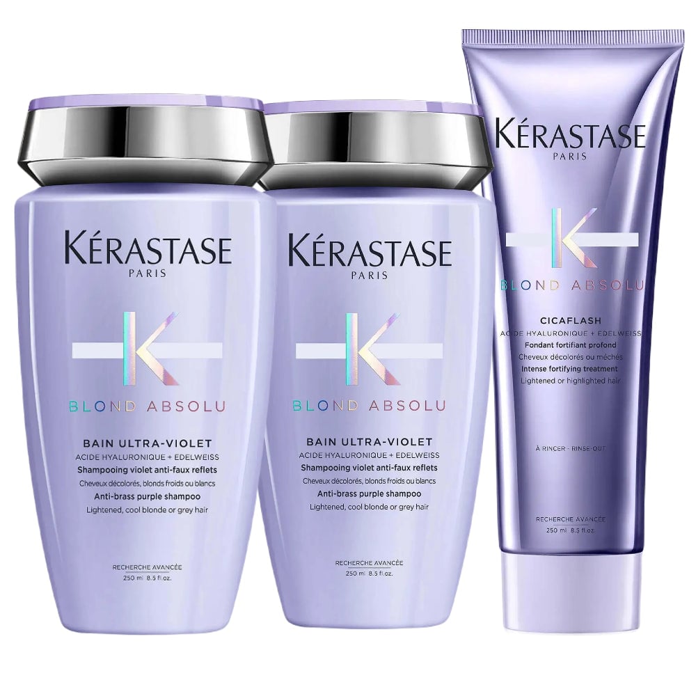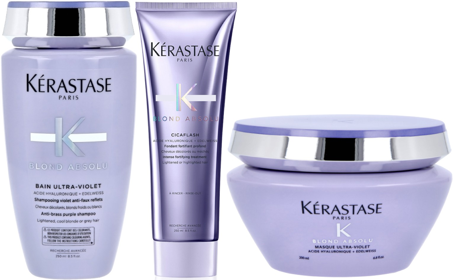 Kérastase Blond Absolu Ultraviolet Shampoo, Conditioner and Treatment Routine for Brightening Blonde Hair