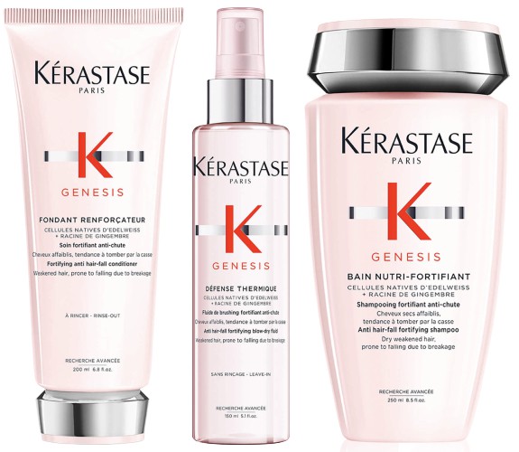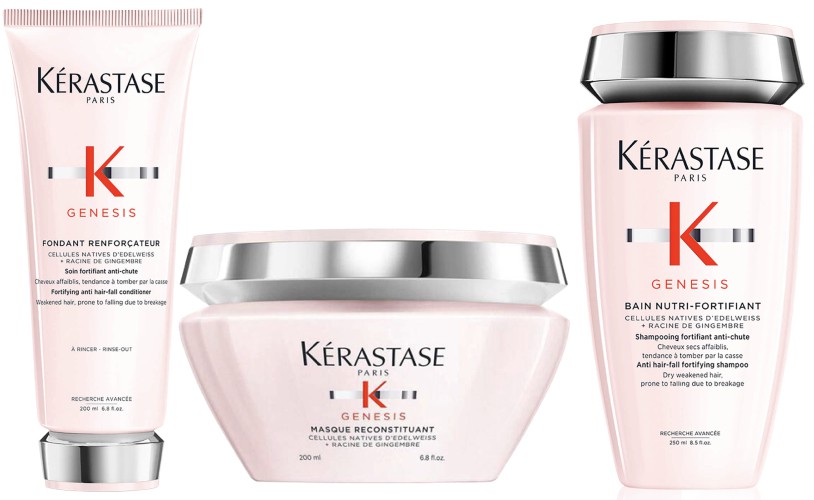 Kérastase hårvårdsset Genesis Bain Nutri-Fortifiant 250 ml, Genesis fondant Renforcator 200 ml och Masque Reconstituant 200 ml (schampo, sköljning och mask)