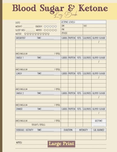 Blood Sugar & Ketone Tracking Journal: 90 Days Nutrition Tracker for Food, Blood Sugar & Ketone Level, GKI, Weight, Calories, Carbs, Protein, and Fat. ... Patients. Large Print 8.5"x11", 99 Pages.