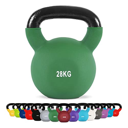 MSPORTS Kettlebell professionell neopren 2 – 30 kg inklusive plansch med kettlebell-övningar 28 kg – olivgrön
