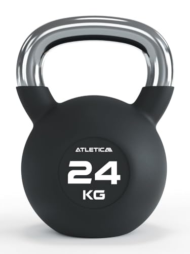ATLETICA kettlebells | 4–32 kg | gummerad kettlebells med kromhandtag | högkvalitativ stållegering | studiokvalitet | funktionell helkroppsträning vikt 24 kg