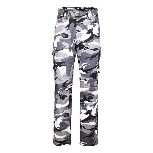 Bikers Gear Australia Kevlar Fodrade skyddande motorcykel cargobyxor Kevlar jeans med avtagbar CE1621-1 rustning, grå kamouflage, storlek 42S