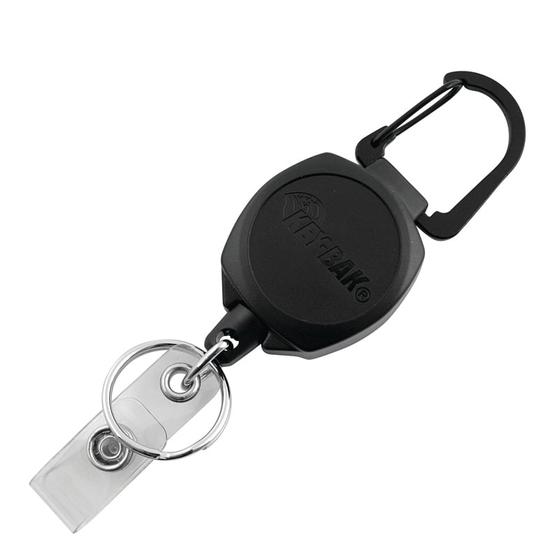 KEY-BAK Mini-BAK infällbar märkeshållare med 91 cm nylonsladd, stålbältesklämma, svart