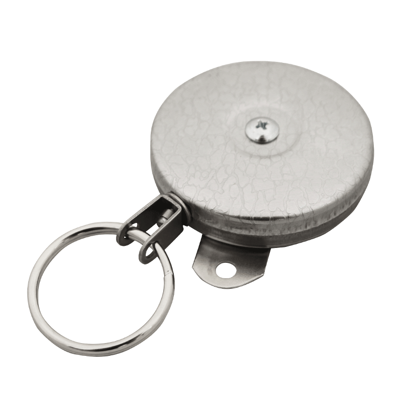 KEY-BAK original SD infällbar nyckelring, 36 tum infällbar sladd, krom fram, stålbältesklämma 368 gram. utdragning, delad ring