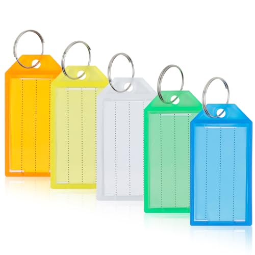 Romon Nyckelringar märkbar, 40-pack robust plastnyckelhängare etiketter, etikettnyckel för märkning med delad ring etikett i fönster, 5 färger