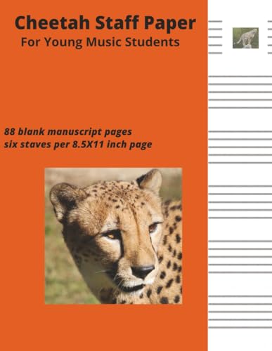 Cheetah Staff Paper: Sheet music notebook for kids large Manuscript paper | Wide Staff Music paper for children | Keyboard music paper for group class and private lessons | Sheet music