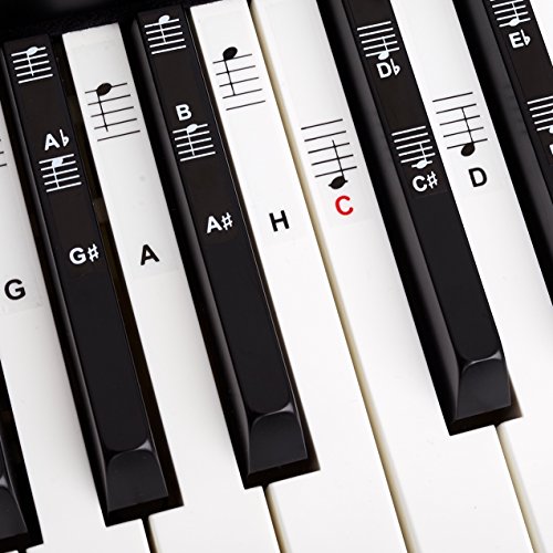 BELFORT Klavier + Keyboard notklistermärken för 49 | 61 | 76 | 88 knappar + ebok för att lära sig anteckningar | Pianotillbehör för svarta + vita knappar | C-D-E-F-G-A-H | lär sig pianotter barn +