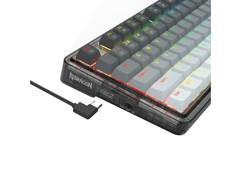 Redragon K732mc-Rgb-Pro Uranus Pro 65% Trådlös USB + RF Trådlös + Bluetooth Mekaniskt Tangentbord Qwerty Svart (US)