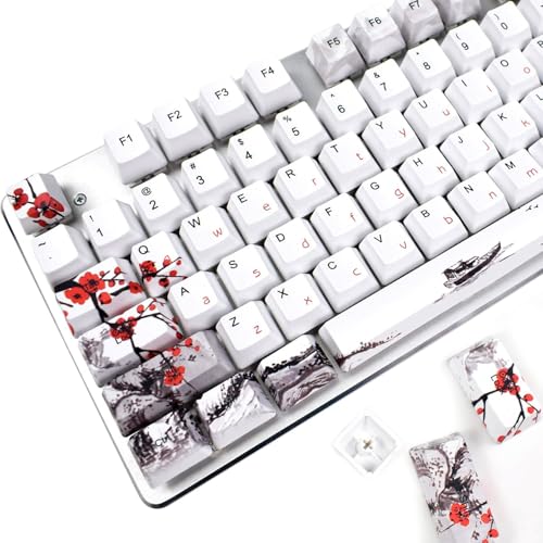 MOLGRIA Tangentknappar 110 st för mekaniskt tangentbord i full storlek, anpassat PBT OEM-profiltangenter, japansk stil med keycap puller för Cherry MX 104/87/71/61 60 procent tangentbord (plommonblom)