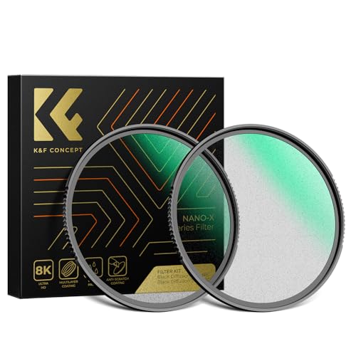 K&F CONCEPT filter 62 mm Black-Mist 1/4 & Black-Mist 1/8 Black Promist filteruppsättningar Black Diffusion för videoinspelning/porträttfotografering (Nano-Xcel)