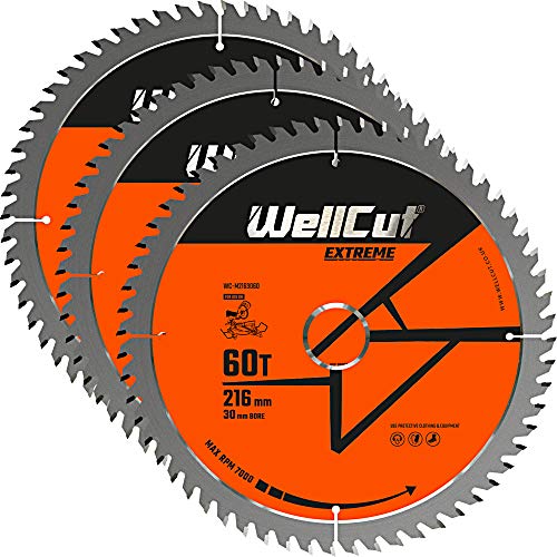 WellCut TCT 3 sågblad 216 mm x 60 tänder x 30 mm håltagning för LS0815, DWS777, DWS774, C8FSR, KGS216
