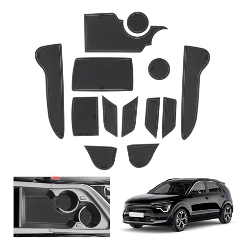 GAFAT Kompatibel med Kia NIRO SG2 Hybrid e-NIRO EV 2022–2025 halkfria mattor, NIRO II från 06.2022 – gummimattor, non-slip mittkonsol, mugghållare, dörrsöm, mattor, NIRO SG2 tillbehör (svart)