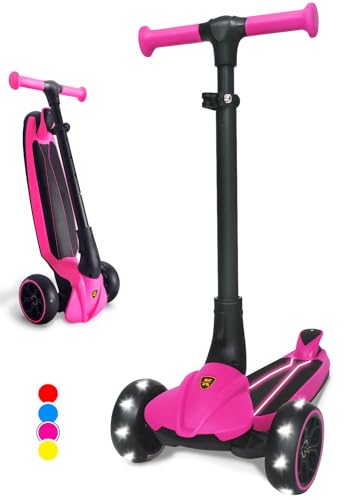 besrey Kick Scooter for Kids Ages 3-10, 3-Wheel Folding Scooter with Adjustable Height, LED Light Wheels, Extra Wide Deck for Outdoor Activities