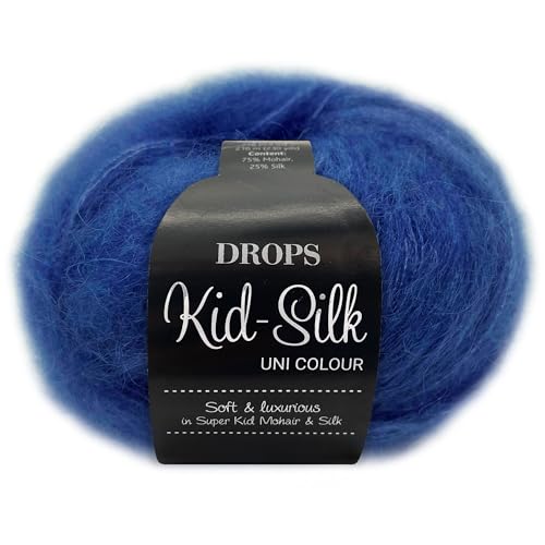 Frida's Wollhaus Drops Kid-Silk Sidengarn, 25 g, mohair och siden, lacegarn, fluffigt, 47 färger (21, koboltblå)