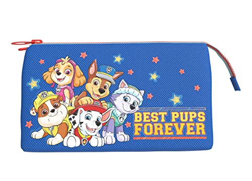 CYPBRANDS Paw Patrol-trippelfodral, unisex barn, pennfodral med 5 fack, med dragkedja jumbo, färger blå och gul, officiell produkt (CyP Brands), färgglad, en storlek, färgglad, Einheitsgröße