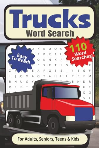 Trucks Word Search Puzzle Book: For Adults, Seniors, Teens & Kids | Easy to Read, 110 Word Searches With Truck Brands, Engines, Parts, Tools, ... Vacations, Holidays, Breaks, and Traveling
