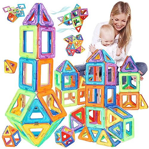 TYFYH 60 stycken magnetiska byggstenar för barn, magnetiska byggklossar, magnetleksaker för barn, magneter, leksaker från 3 4 5 6 7 8, present för pojkar och flickor