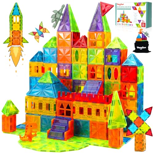 Theefun Magnetiska byggstenar, magnetiska byggstenar, magnetiska plattor, magneter, leksaker för barn, magneter, byggklossar, barnleksaker, gåva för från 3 4 5 6 7 8 år, pojkar och flickor