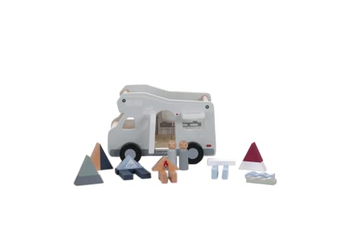 EverEarth Camping van för barn med byggklossar och lekfigurer av trä – campingbuss, husvagn för pojkar och flickor – lekbil, bulli-set, lämplig som present – husbil, leksaksbilar EE33904