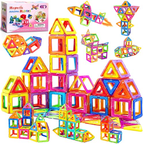 Vautvis Magnetiska byggklossar barn, 61 delar magnetiska byggklossar barn, magnetisk byggsats, 3 4 5 6 7 8 år gamla barnleksaker julklapp för barn