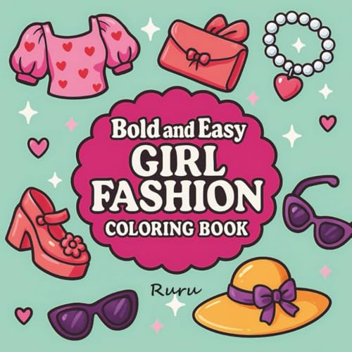 Girl Fashion: Bold and Easy Coloring Book for Adults & Kids, Big Fashion Designs for Relaxation Featuring Fun and Stylish Outfit, Accessories, Makeup and More