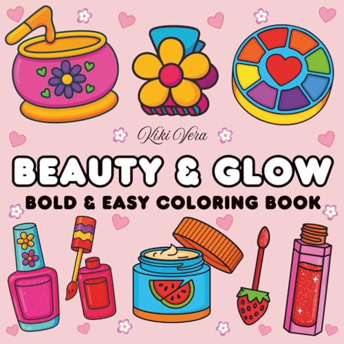 Glow Cosmetics Bold & Easy Coloring Book: Cute and Cozy Designs Coloring Book for Adults and Kids, Featuring Makeup, Skincare, and More Cosmetic Products for Relaxation (Bold and Easy Coloring)