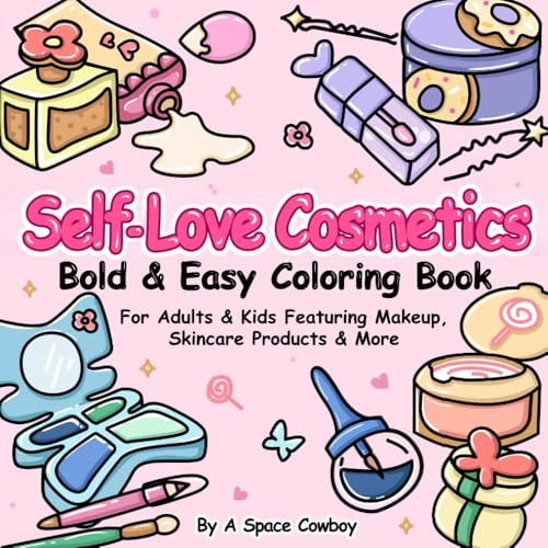 Self-Love Cosmetics: A Bold & Easy Coloring Book For Adults & Kids Featuring Makeup, Skincare Products & More