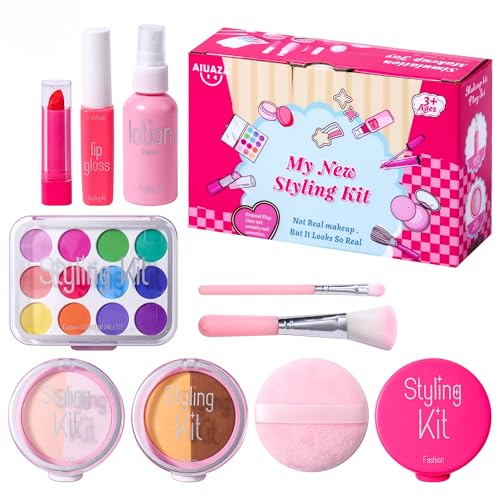 AIUAZA barn hem makeup leksak set om 10, vätskefri och pulverfri, flickor klä upp leksaker, barn gör det, leksaker för flickor prinsessa födelsedagspresent ålder 4–12