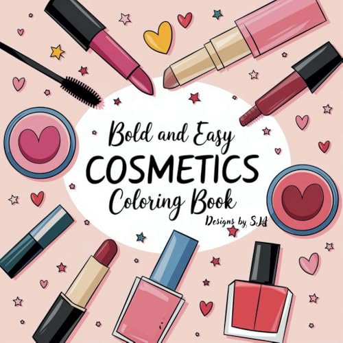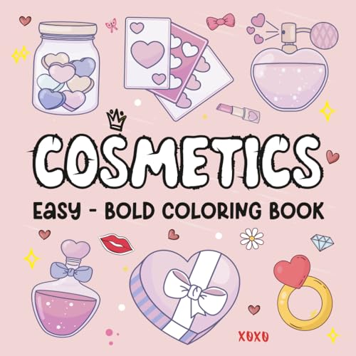Cosmetics: Bold and Easy Coloring Book for Adults, Kids and Seniors with Simple and Relaxing Cosmetic Designs for those who love to indulge in the world of Makeup and Creativity.