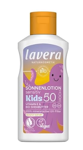 lavera Sun Lotion Sensitiv KIDS LSF 50 – solkräm för barn – utan kemiska UV-filter – för känslig hud – vattentät – vegansk – naturkosmetik – 100 ml