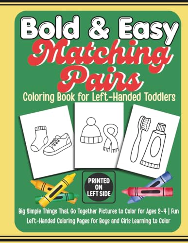 Bold & Easy Matching Pairs Left-Handed Coloring Book for Toddlers: Simple and Fun Matches Like Toothbrush and Toothpaste, Cup and Straw, Sock and Shoe | Big Bold Coloring for Left-Handed Kids