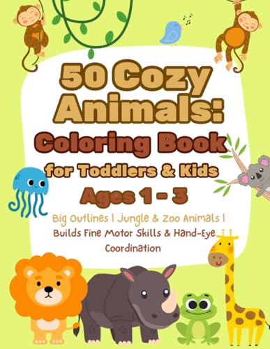 50 Cozy Animals Coloring Book for Toddlers & Kids Ages 1–3: Big Outlines | Jungle & Zoo Animals | Builds Fine Motor Skills & Hand-Eye Coordination | Great Gift for Ages 1-3