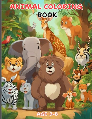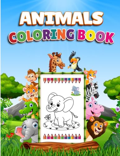 Animals Coloring Book for Kids Ages 3-8: Fun and Easy Coloring Pages Featuring Zoo, Farm, Jungle & Wild Animals – Activity Book for Toddlers, Preschoolers, Boys & Girls