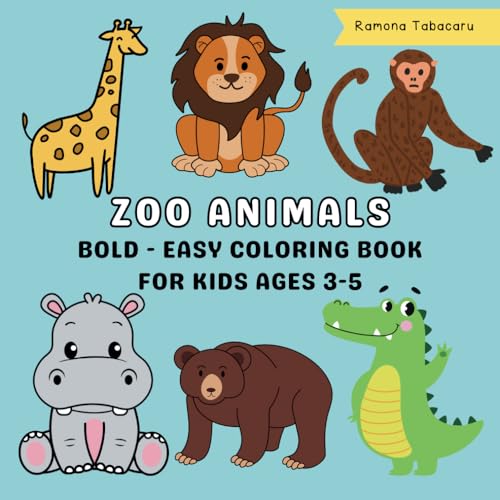 Zoo Animals Coloring Book for Kids Ages 3-5: Bold and Easy Zoo Animal Designs for Coloring Fun and Learning