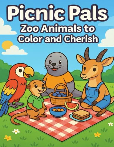 Picnic Pals: A Colourful Zoo Adventure: A Fun Zoo Animal Coloring Book for Kids Ages 3-6 / 30 Cute Pages of Easy-to-Color Friends in Outfits