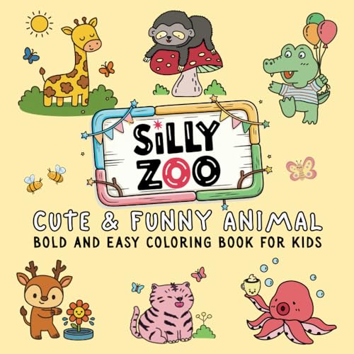 Silly Zoo: Cute & Funny Animals Bold and Easy Coloring Book for Kids, featuring 50 fun and simple wildlife illustrations designed for boys and girls ages 3-7 to enjoy relaxing, stress-free pages