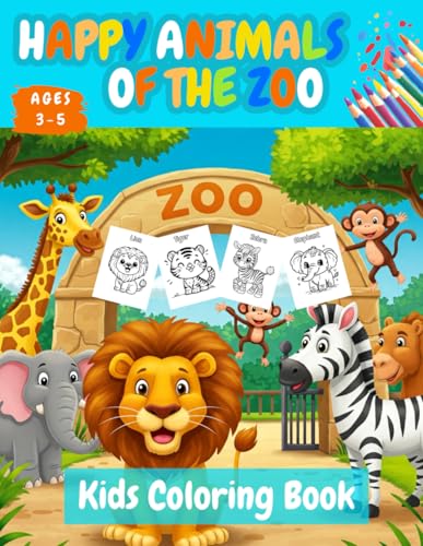 Happy Animals of the Zoo Kids Coloring Book: An Interactive Coloring Adventure at the Zoo For Kids Ages 3-5