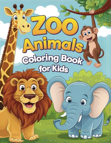 Cute Zoo Animals Coloring Book for Kids: Fun and Easy Zoo Animal Coloring Pages for Toddlers and Kids Ages 3–8 | Lions, Pandas, Elephants, Giraffes, Monkeys and More!