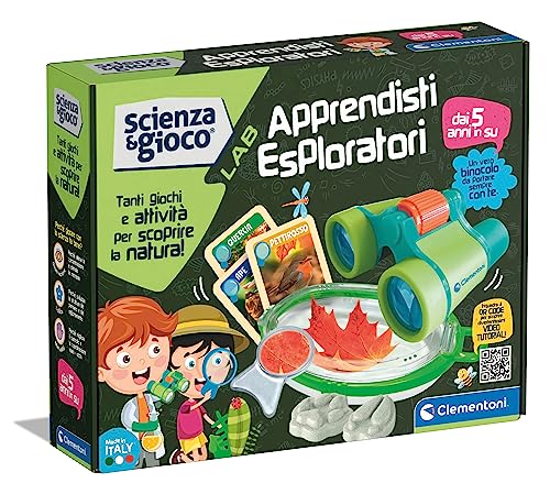 Clementoni Lab-Lab-Lab-Science Experiment, Explorer Kit, Vetenskapligt spel barn 5 år, laboratorium, med kikare, tillverkad i Italien, italiensk färg, 19363